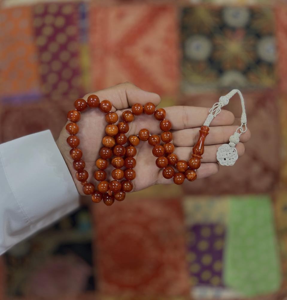 مسباح سِدا ، تتميز بتصميم مريح وأنيق، عليها طربزونة نحاس تركيه مما يعطي السبحة جمال